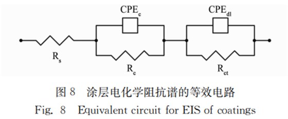 由圖7可見(jiàn):滲鋅-達(dá)克羅-封閉涂層的容抗弧 半徑最大,說(shuō)明其電化學(xué)反應(yīng)阻力最大,故耐蝕性最 好;滲鋅-封閉涂層的容抗弧半徑盡管小于滲鋅-達(dá) 克羅-封閉涂層的,但仍遠(yuǎn)大于單獨(dú)滲鋅涂層的,說(shuō)明其耐蝕性良好。